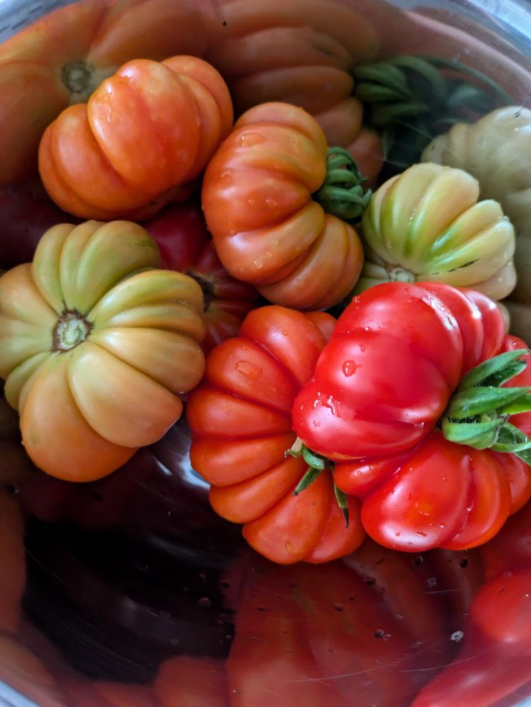 Head on over to instagram for our latest updates, we’re posting there as things move along. And enjoy this photo of our heirloom tomatoes as well.