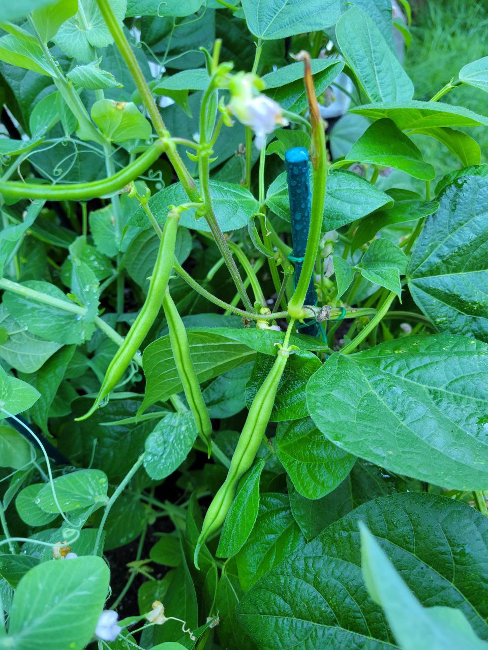 Much like peas, they were a later start but they grew quickly and once transplanted they grew a lot faster than I thought. It felt like one day we were checking on seedlings and the next we were harvesting a bowl of beans. And they have purple flowers; so cute!