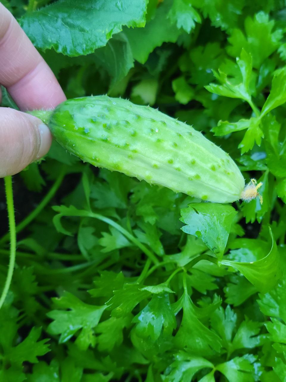 Celery is confusing. The seeds are really small. When you plant seedlings you often put a couple of seeds in the spot to germinate and then you keep the strongest plant. What’s confusing about celery is that when multiple seeds bloom it kind of just looks like … Celery, but little. We didn’t know we had inadvertently crowded their spots until it was too late and we had many heads of celery intertwining and growing wild. We ended up culling them for the sake of our cucumbers.