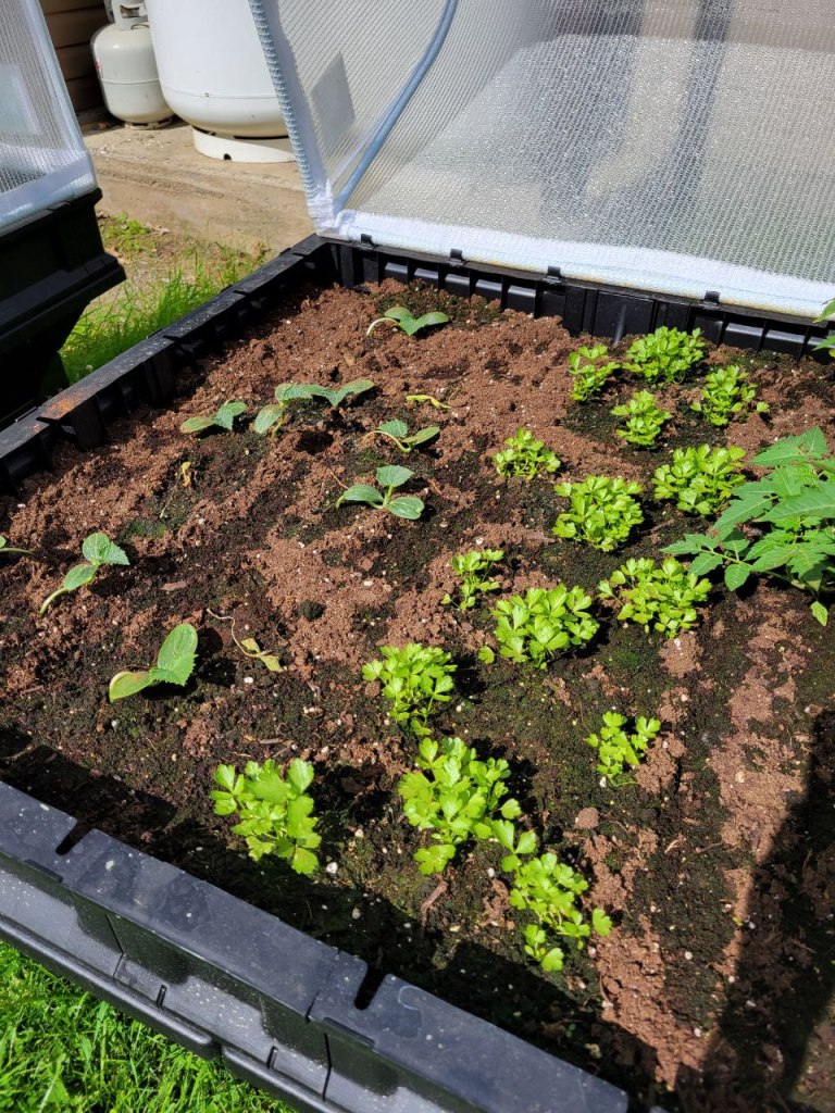 In late June we transplanted our early June starts as well, completely filling both of our vegepods with seedlings.