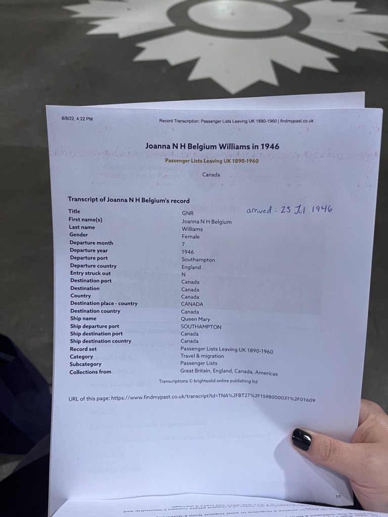 After the war they boarded the Queen Mary, YES THE FAMOUS HAUNTED QUEEN MARY, and set sail for a new life in Canada, a life after the war. They landed in Halifax at Pier 21 on July 23rd, 1946 which was my grandmother’s birthday and made way for New Brunswick where my grandfather’s family was from.