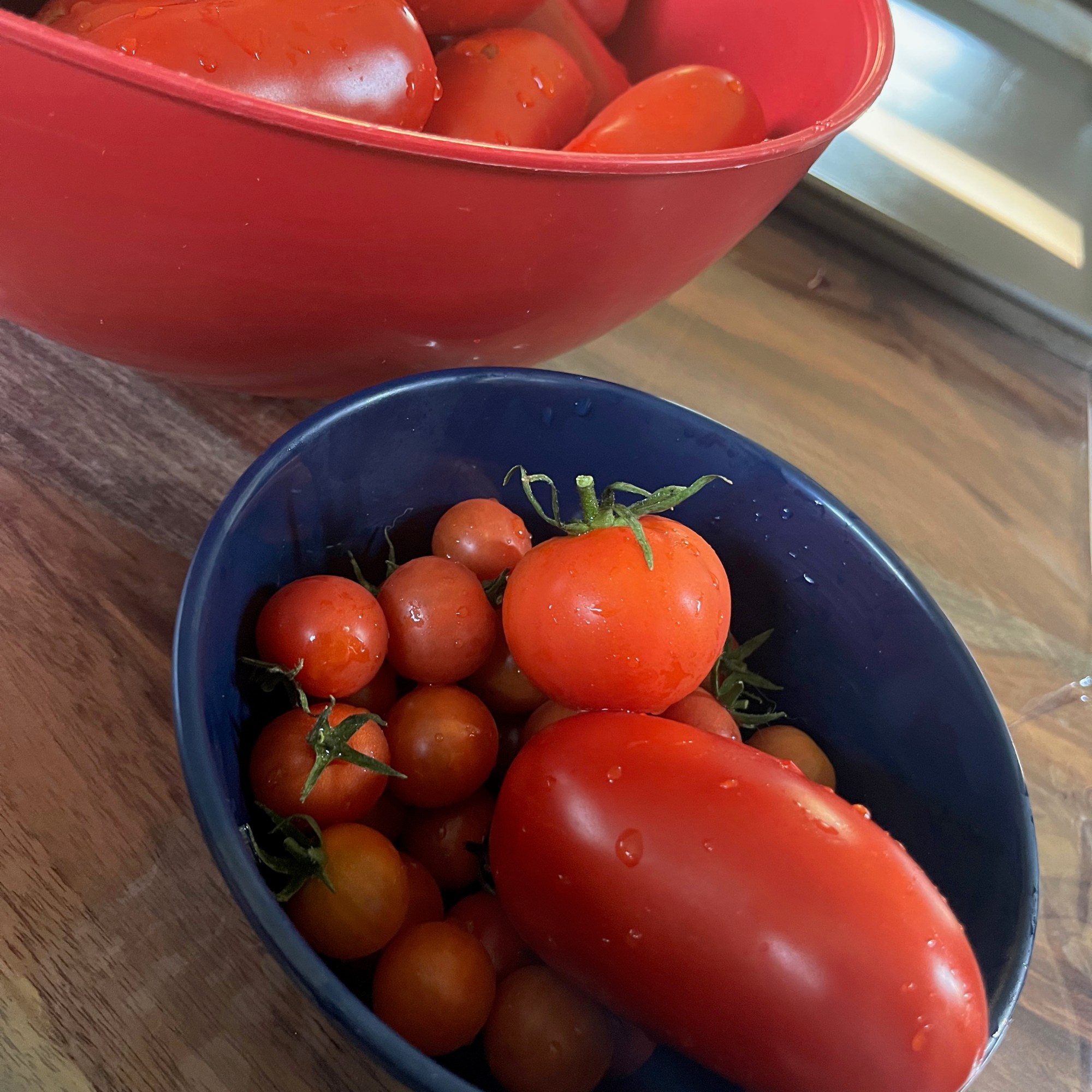 If you’re anything like me, tomatoes can be super hit and miss. What I mean is, some tomatoes are delicious and others … Not so much, especially fresh. We grew A LOT of tomatoes. Cherry tomatoes, full roma tomatoes… Our tomatoes took over the garden. We were really hoping to make tomato sauce and soup to freeze so this actually worked out really well for us, or so we thought. Until we realized that we overwatered them because of the rain and many split. Unfortunate, but luckily that’s what stores are for. We went and picked up some supplemental roma tomatoes and then we made our sauce and soup! I’ve included the recipes below.
