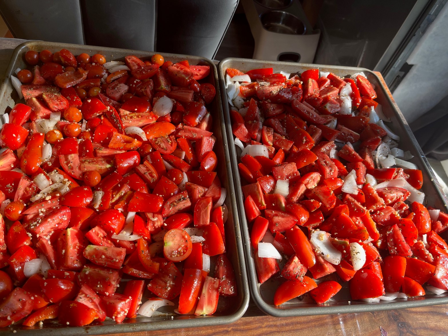 3 kg of fresh tomatoes, chopped (we used roma and cherry tomatoes)