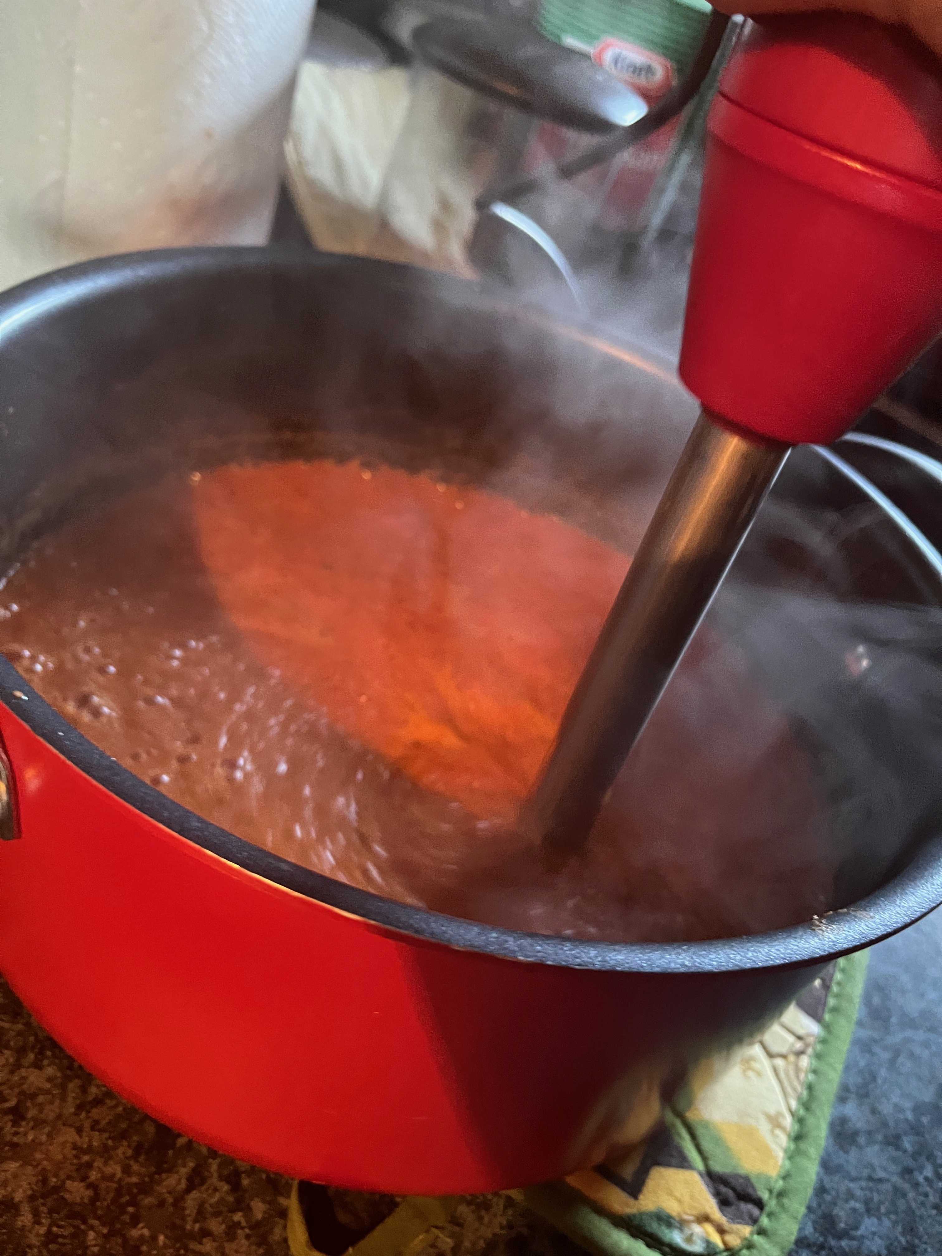 OPTIONAL: Blend using an immersion blender for a smoother sauce